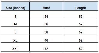 Size (Inches): S-34, M-36, L-38, XL-40, XXL-42
